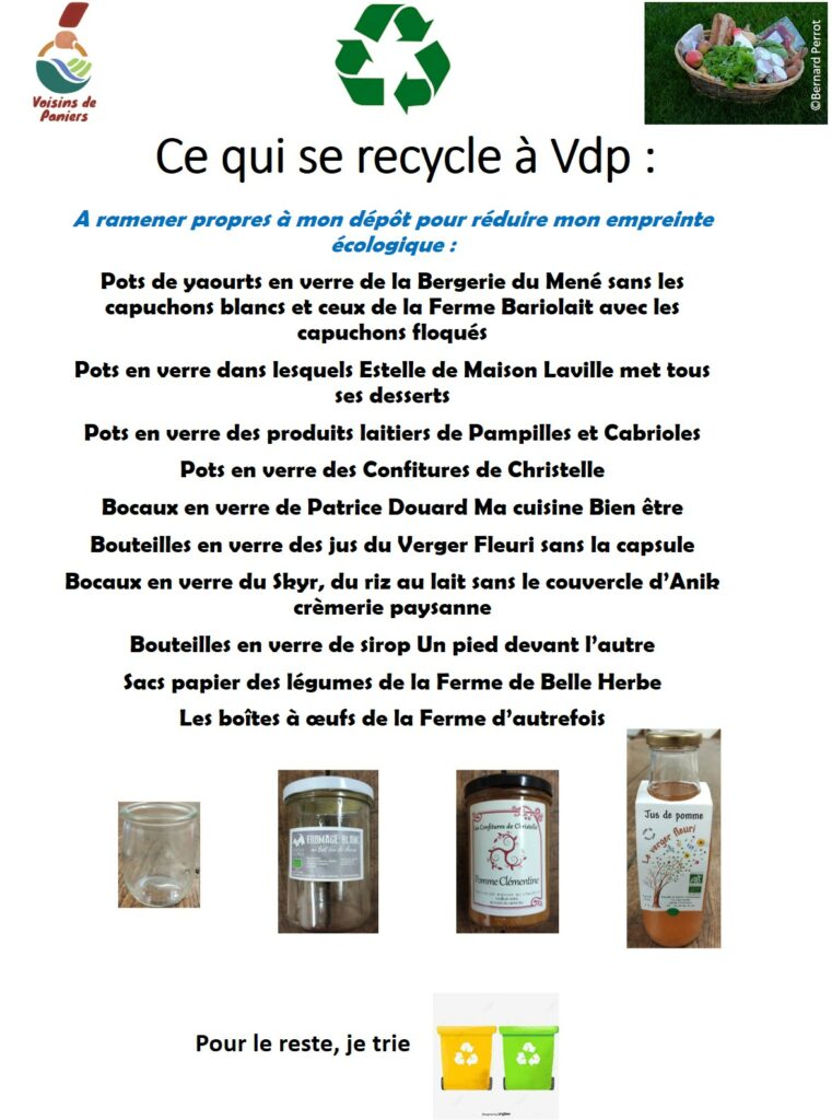 Petit rappel : Tous les contenants en verre qui se recyclent à Vdp sont à retourner propres. Merci