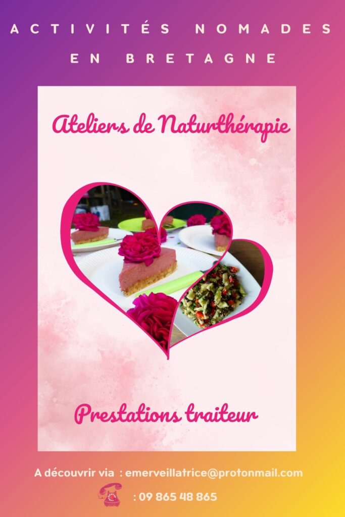 Aniva's Créations est une branche de l'entreprise Bretonne "Rencontres & Découvertes" créée avec pour seul objectif : Servir la Vie et la mettre à l'Honneur.Ici Aniva’s Créations propose de découvrir différents plats inspirés de l' »Alimentation Végétale et Vivante ». Sans produit animal, sans laitage, sans œuf, sans beurre, sans gluten et aussi sans cuisson, cette alimentation a l’avantage de pouvoir convenir à tous les régimes. Même les pâtisseries sont sans incidence sur la balance. Cette nourriture rétablit aussi par sa puissance l’équilibre intérieur : gage de santé.