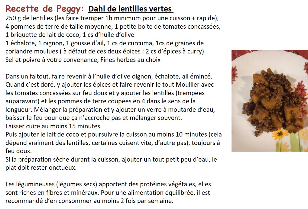 Dahl de lentilles vertes de Peggy